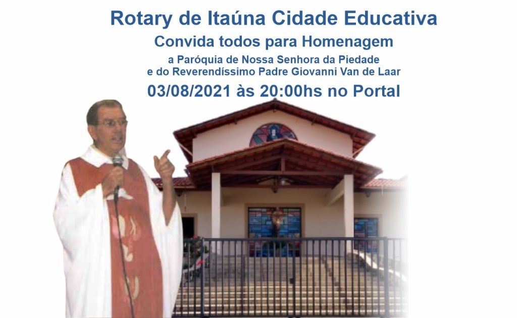 Dia: 03/08/2021Hora: 20:00Local: Portal O Rotary de Itaúna Cidade Educativa, por ocasião das comemorações pelo Jubileu de Ouro da Paróquia de Nossa Senhora da Piedade, vamos fazer uma homenagem a Paróquia e ao Reverendíssimo Padre Giovanni Van de Laar, por ter sido o pároco que por mais tempo esteve no comando dessa paróquia e ainda…